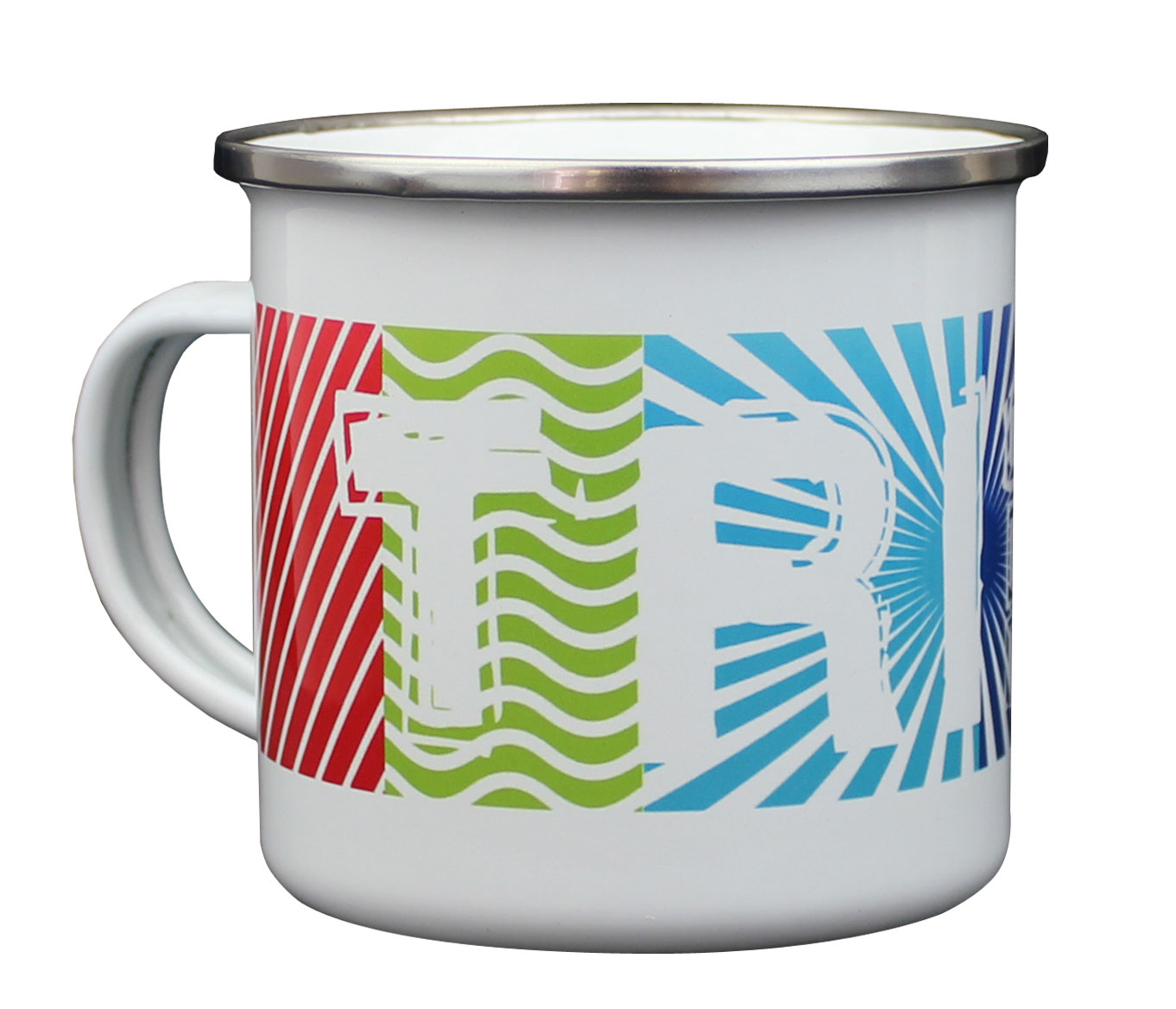 Emailletasse weiß 12oz, mit silbernem Tassenrand