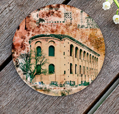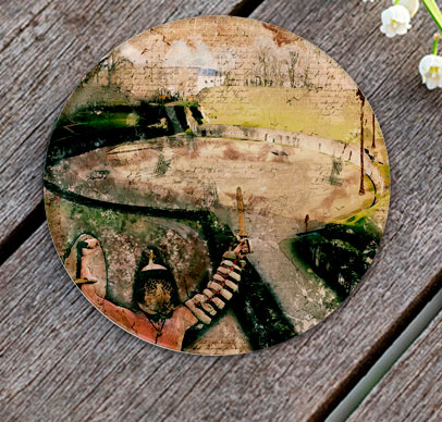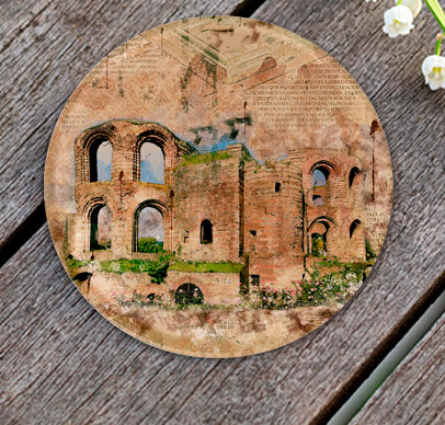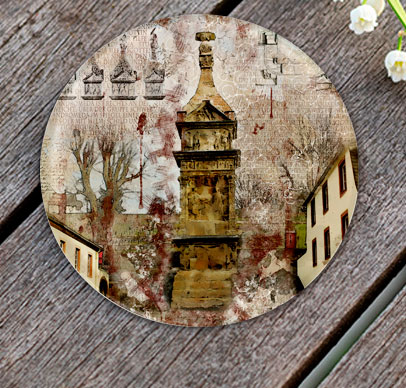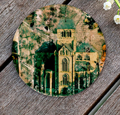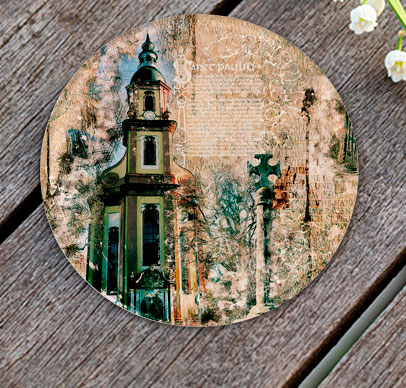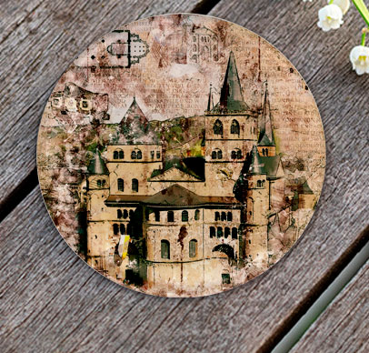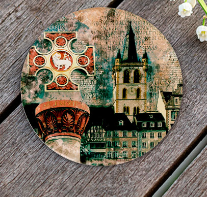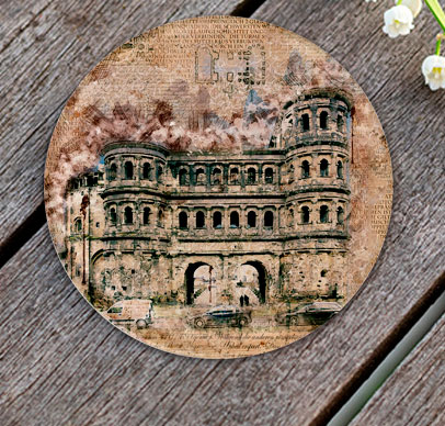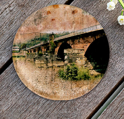 Glas-Untersetzer, Rund mit ca. 100 mm Durchmesser, Handspülung empfohlen, Rückseitig bedruckt