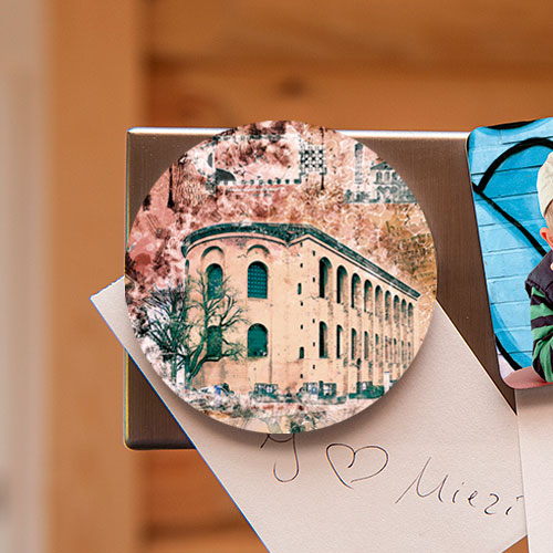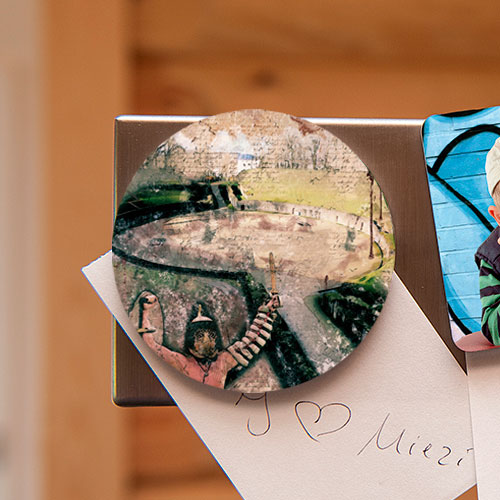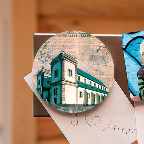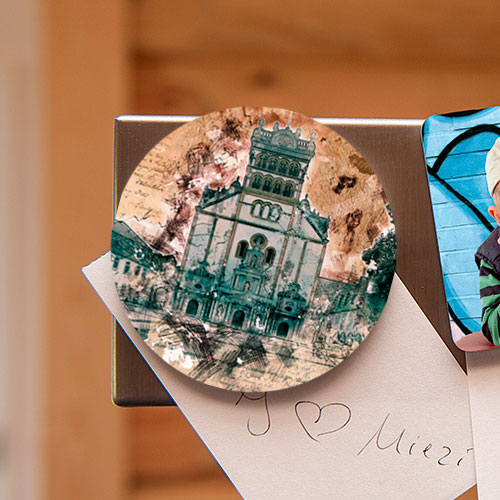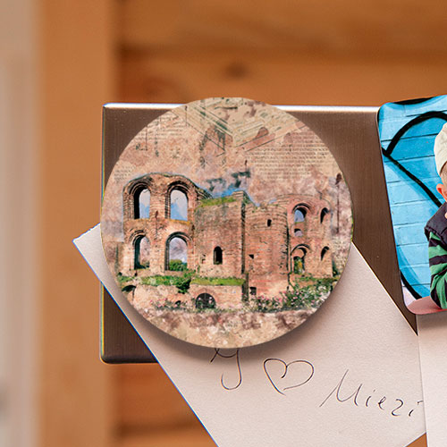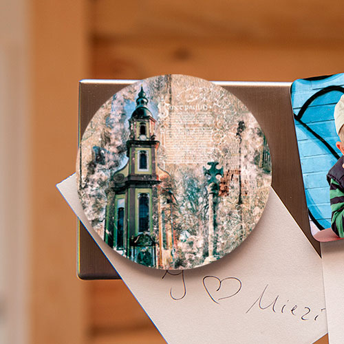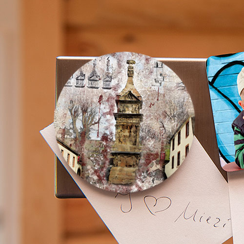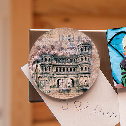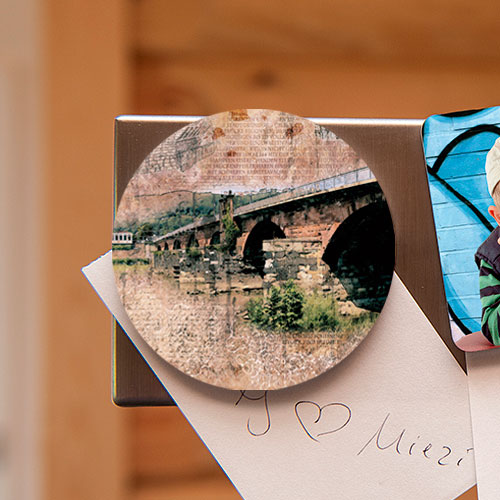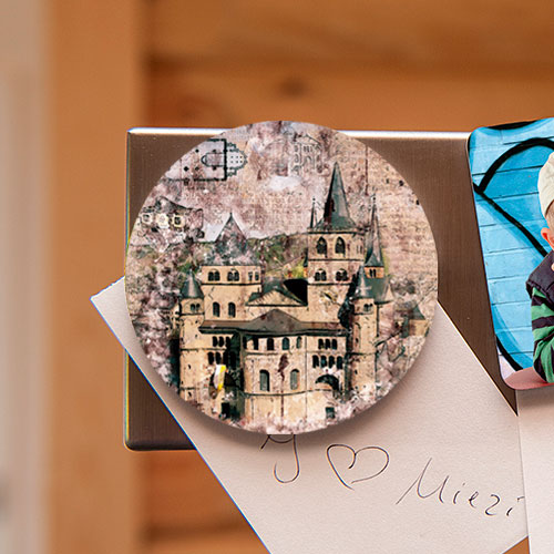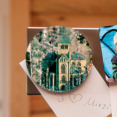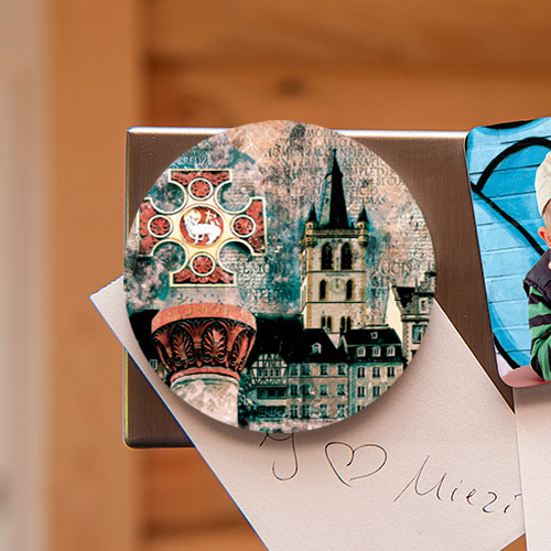 Kühlschrankmagnete, rund Ø 63 mm, 2 mm stark, glänzend aus weißem Kunststoff mit verschiedenen Motiven lieferbar