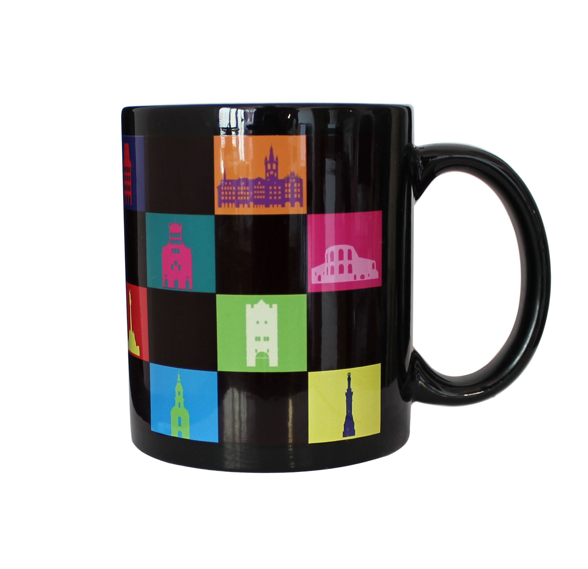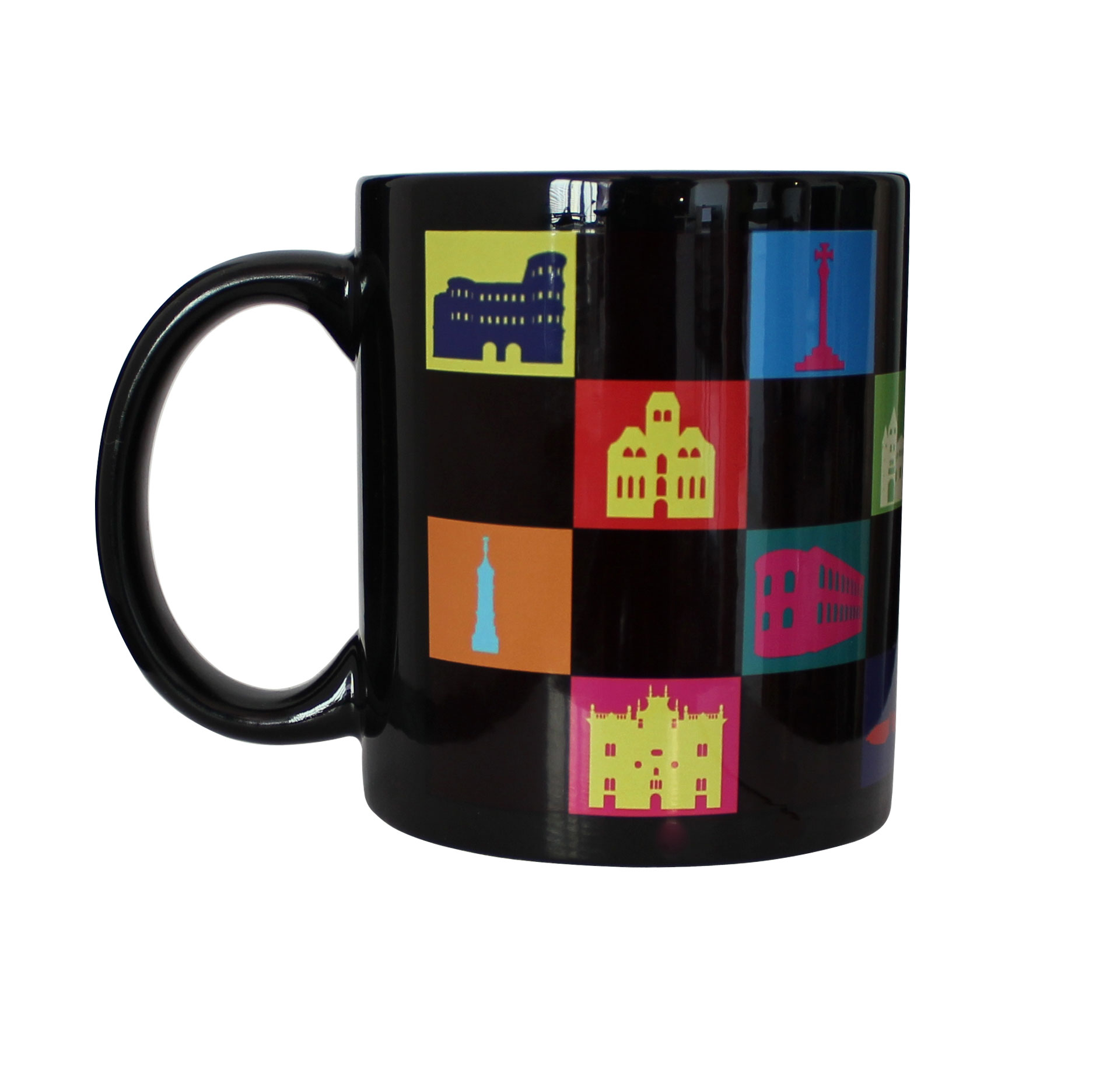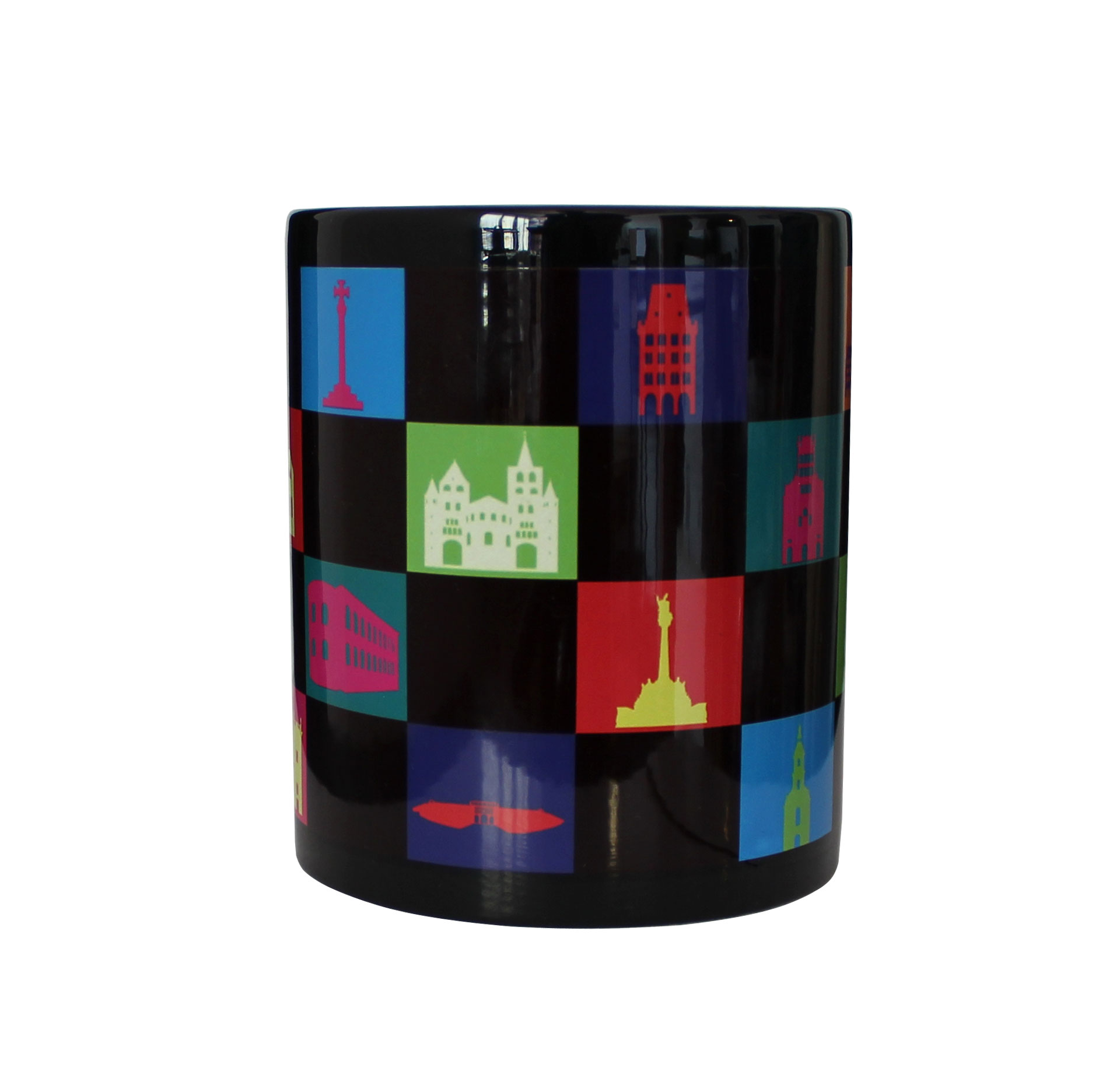 Keramiktasse - Grundfarbe: schwarz-glänzend, mit C-förmigem Henkel