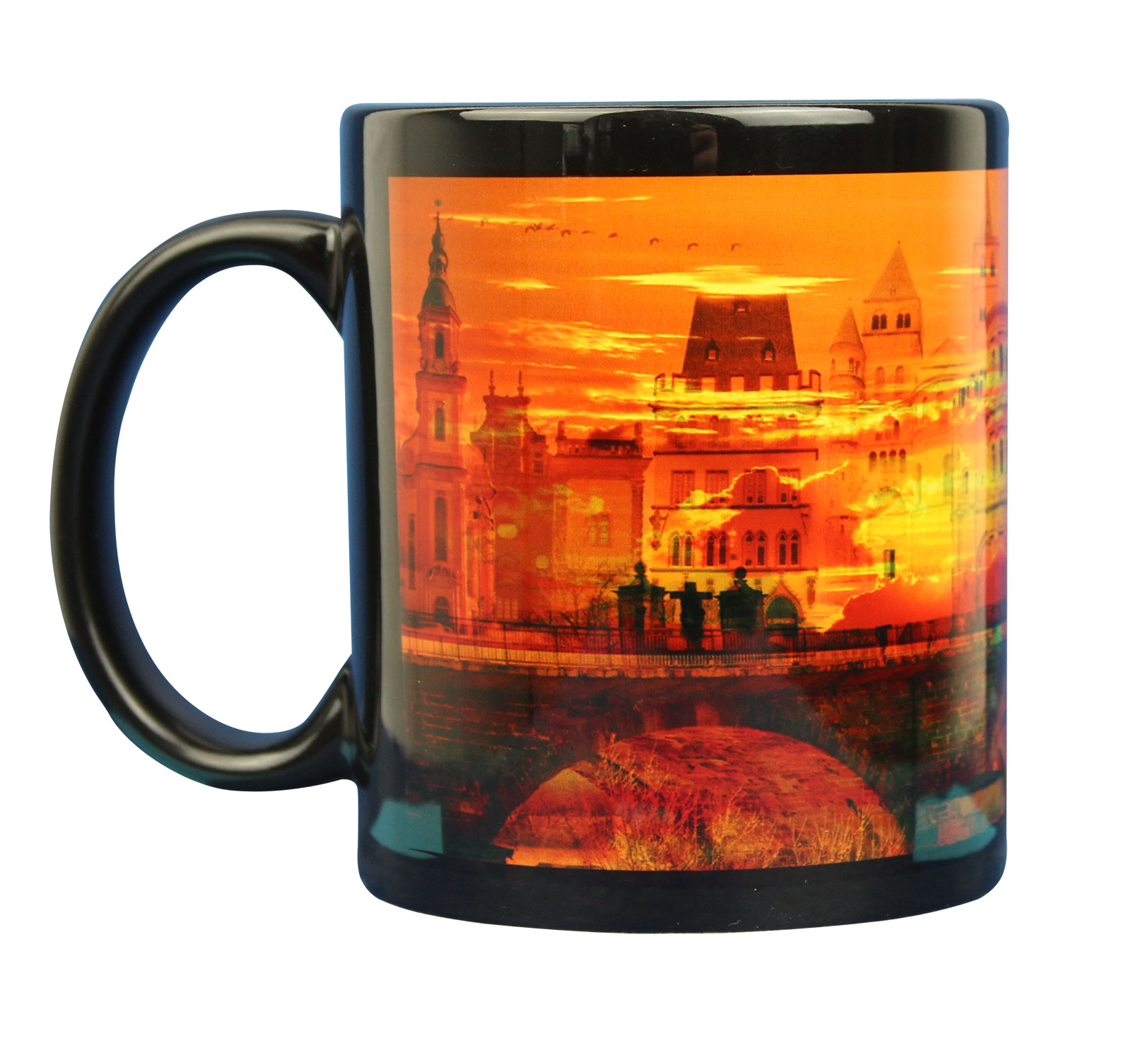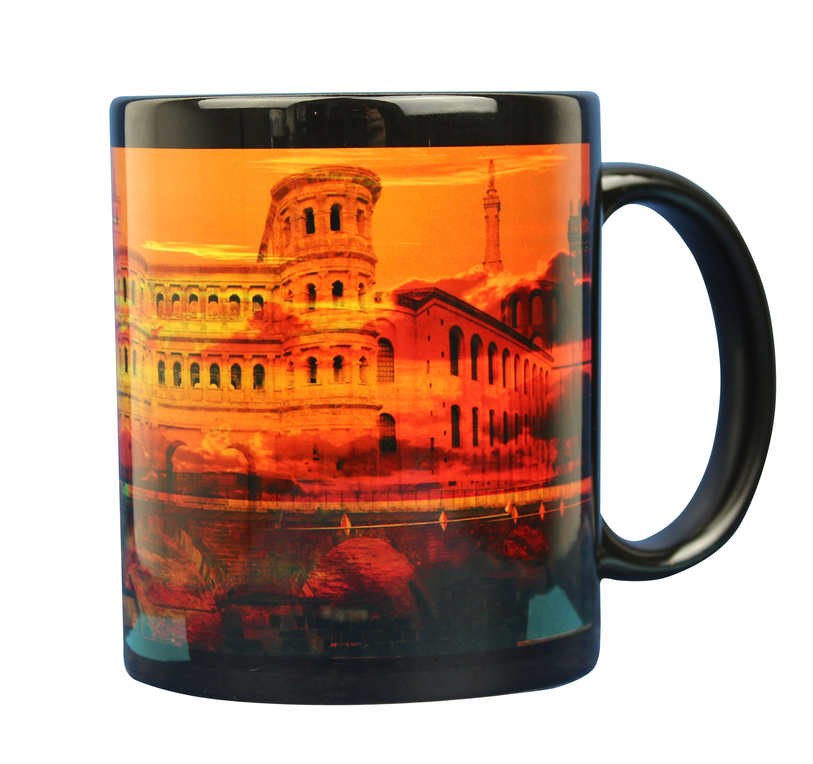 Info: Produktionsbedingt ist ein kleiner schwarzer Rahmen um das Motiv, der dunkler ist als das schwarz der Tasse selbst. Dies ist kein Produktionsfehler sondern beabsichtigt, da sonst der Rahmen weiß wäre.
