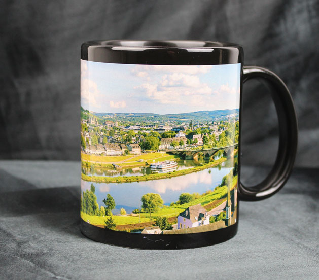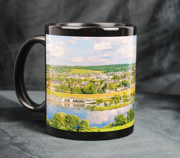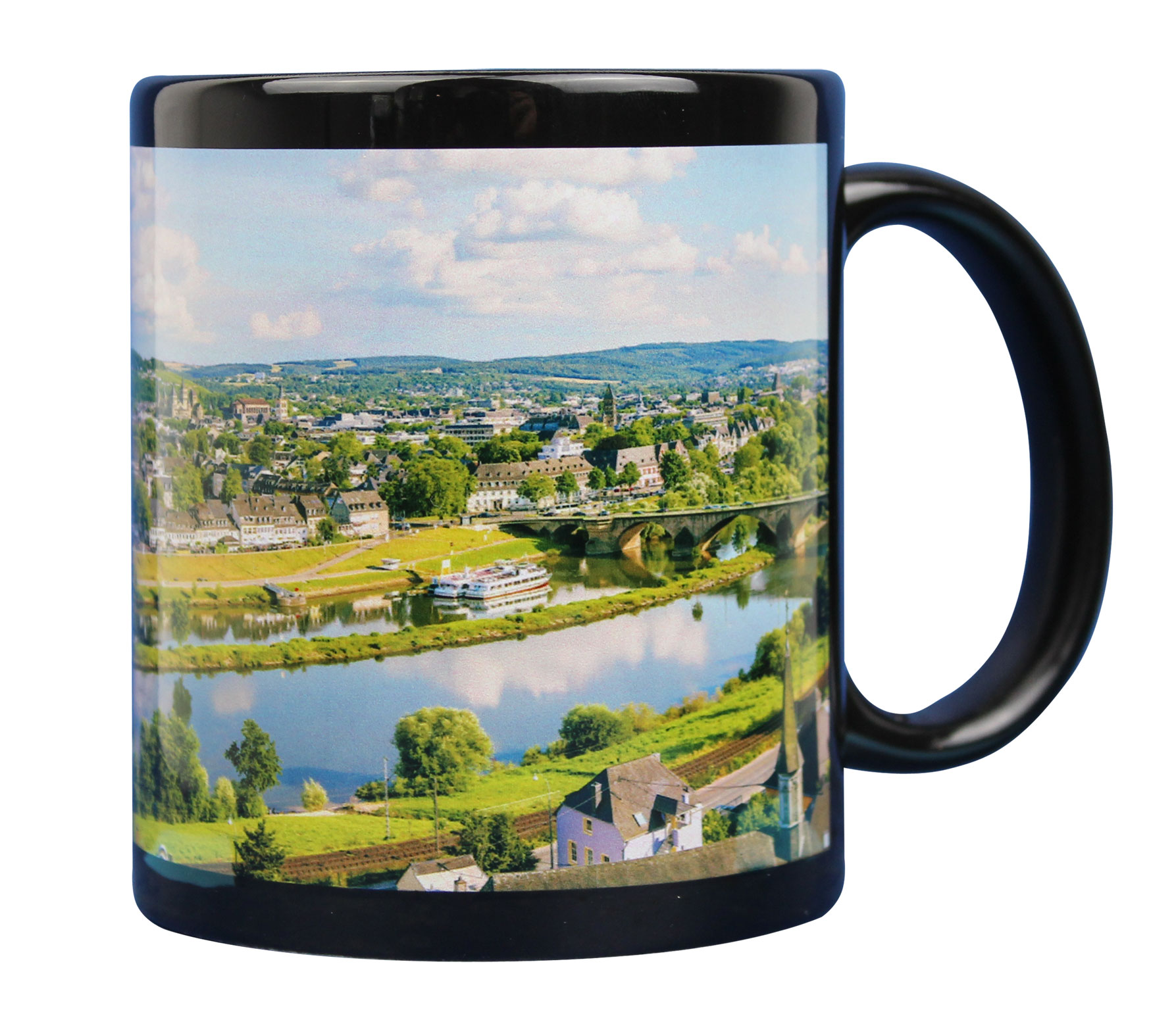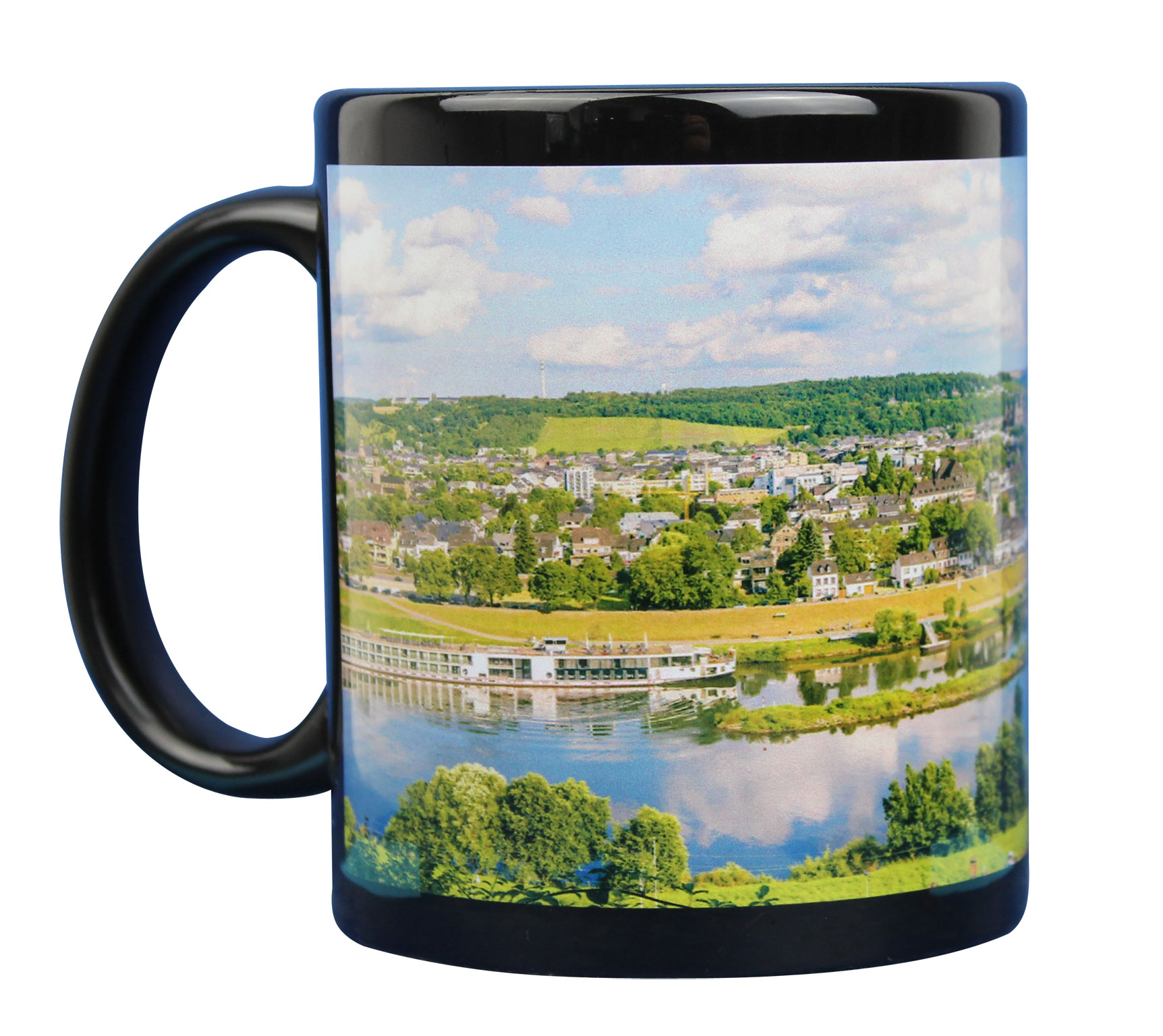 Keramiktasse - Grundfarbe: schwarz mit C-förmigem Henkel