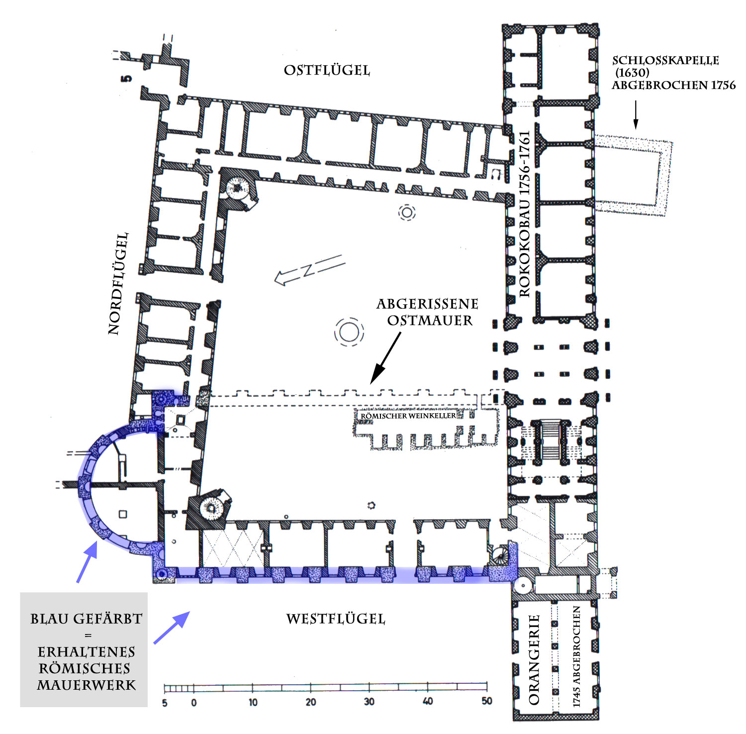 Abb.6: eigene grafische Überarbeitung - Quelle/Ursprung: Führer zu vor- und frühgeschichtlichen Denkmälern TRIER Teil-1 Text, S. 145 - Römisch-Germanisches Museum Mainz, 1977 Verlag Philipp von Zabern, Mainz + TRIER, Kaiserresidenz und Bischofssitz, Verlag Philipp von Zabern, Rheinisches Landesmuseum Trier, 1984