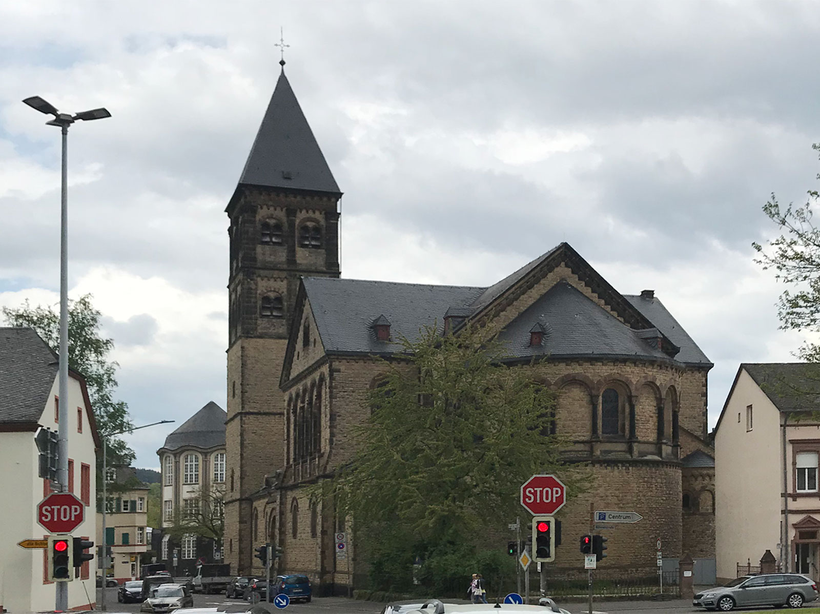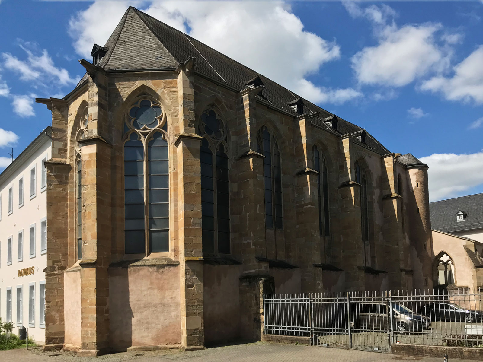 Besonderheiten: Seit Napoleons Verstaatlichung im Jahr 1802 keine Kirche mehr. Von der Kirche ist nur der Langchor erhalten, der heute in den Komplex des Rathauses integriert ist – heutige Nutzung: Sitzungssaal des Trierer Stadtrats