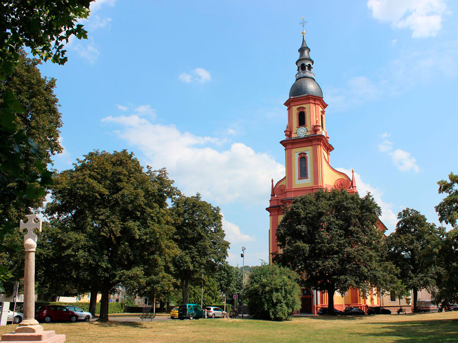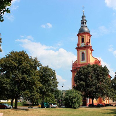 Baujahr: Grundbau 1344 + 1507 (Turm ab dem 5. Geschoss und Brüstung) + 1670 (nördliches Seitenschiff) + 1731 (Rokoko-Portal als Zugang vom Marktplatz) + 1746 Rokokostuckdecken der Seitenschiffe
